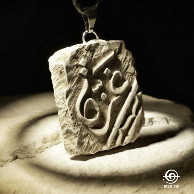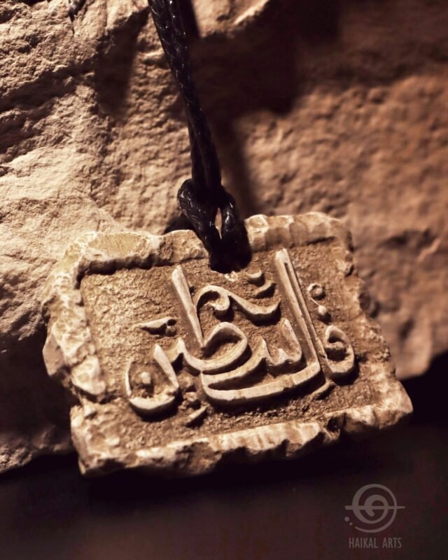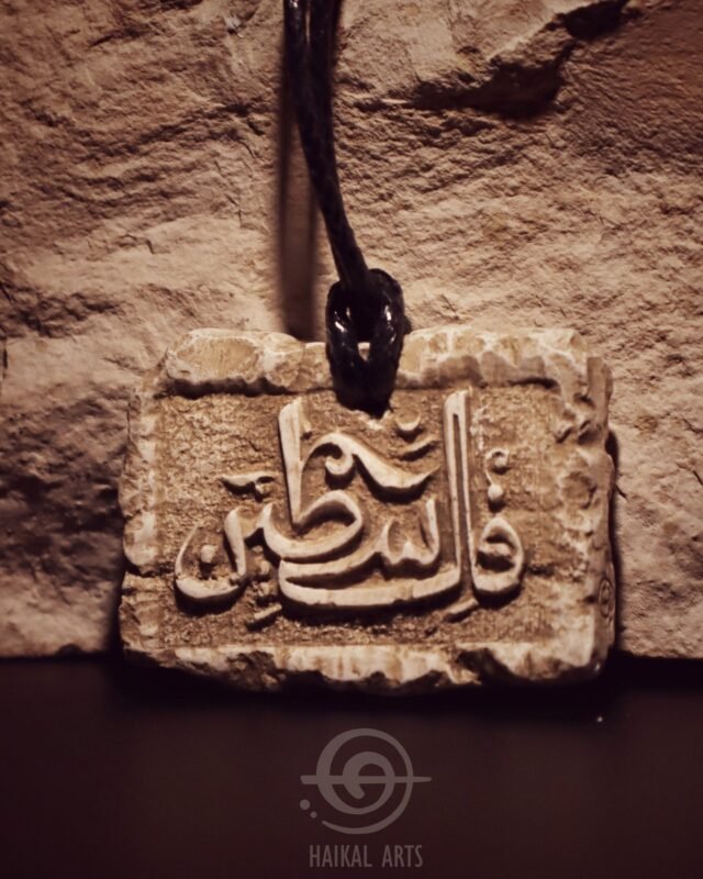 قلادة مصنوعة يدويًا من الحجر الطبيعي، ومنحوتة بإتقان على يد فنان عربي مبدع، تحمل اسم "فلسطين" بخط عربي أصيل يعكس عبق التاريخ وروح الأرض.