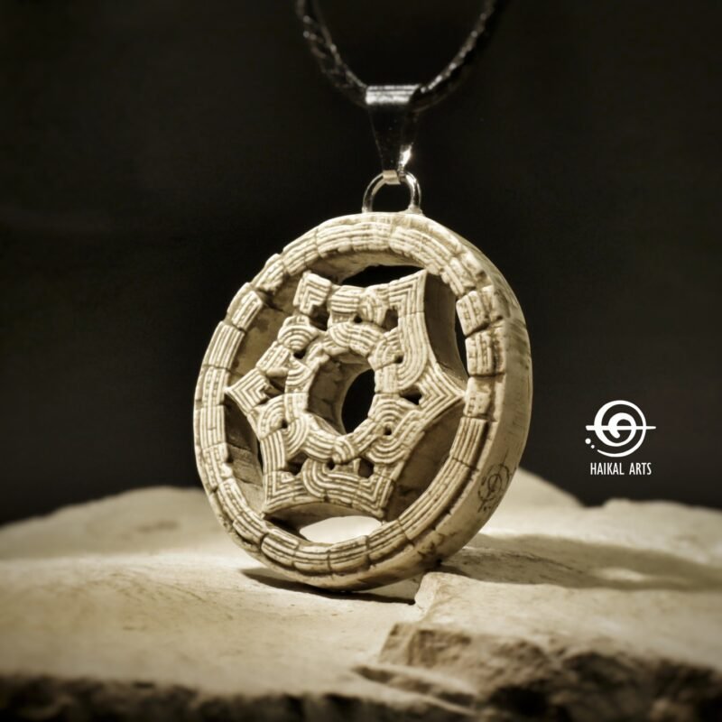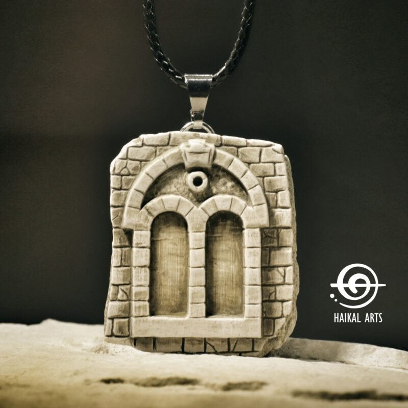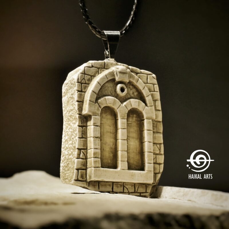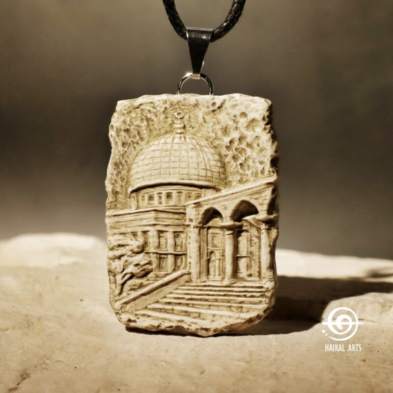 قلادة قبة الصخرة – حجر ينطق بالمقدس استلهم الفنان علاء أبو هيكل في هذه القلادة روح القدس وجلال المعمار الإسلامي،