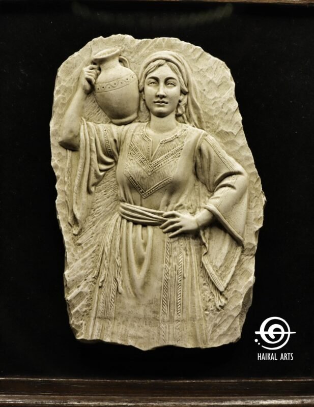1. “من قلب التراث… امرأة تسقي الذاكرة”نحت حجري يجسد أصالة المرأة الفلسطينية، رمز العطاء والصمود. 2. “حين يتكلم الحجر… تحكي